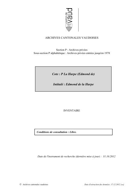 P La Harpe Inventaires Des Archives Cantonales Vaudoises